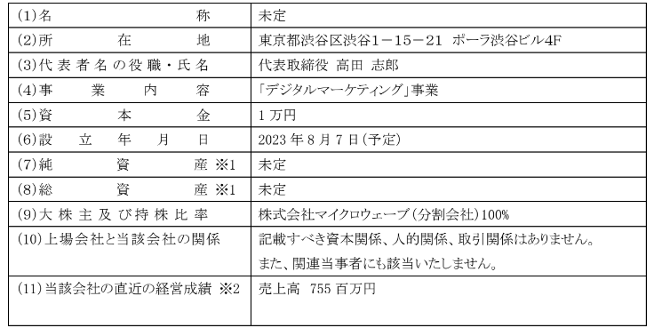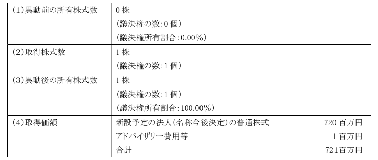 ※1 新設会社の設立時の純資産、総資産は現時点で未定です。数値が定まった段階で開示を行う予定です。