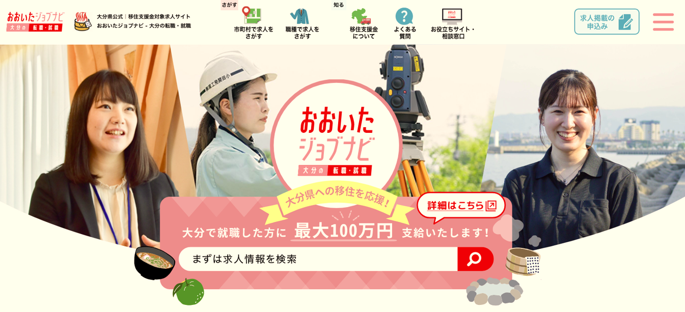 この度パーソルP&Tは、大分県にて移住支援金支給の対象となる求人情報提供サイト「おおいたジョブナビ」のリニューアルを実施いたしました。本改修によって、求人登録数及び応募数の増加を実現し、採用数の拡大につなげ、県内企業の労働力確保と移住者の増加を支援いたします。