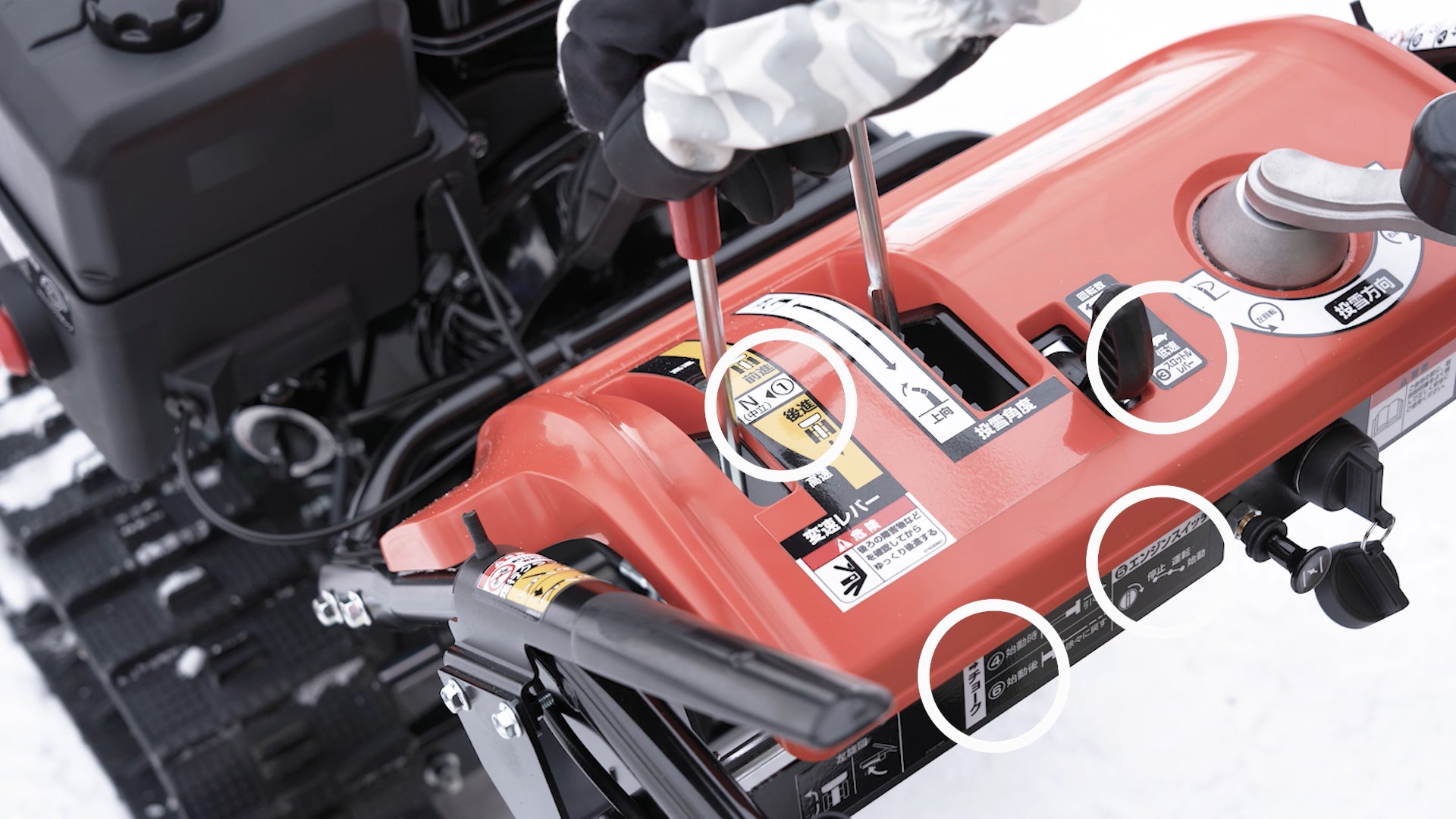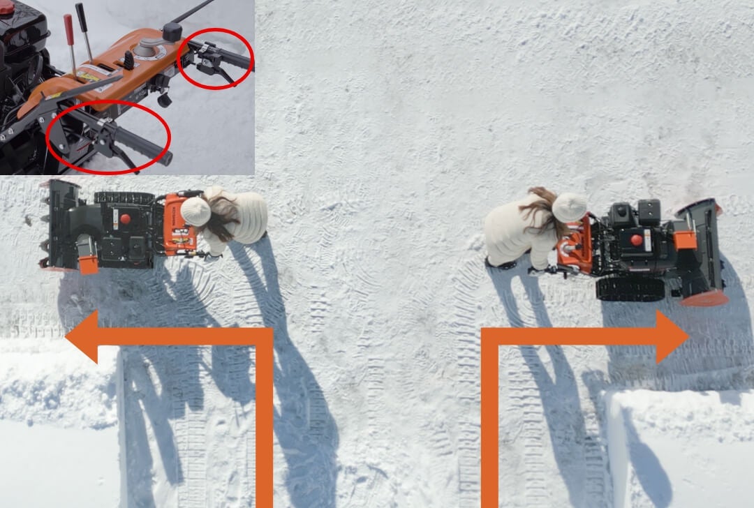 同価格帯の除雪機にはついていない旋回補助機能があり、回りたい方向にレバーを握ると簡単に旋回できます。