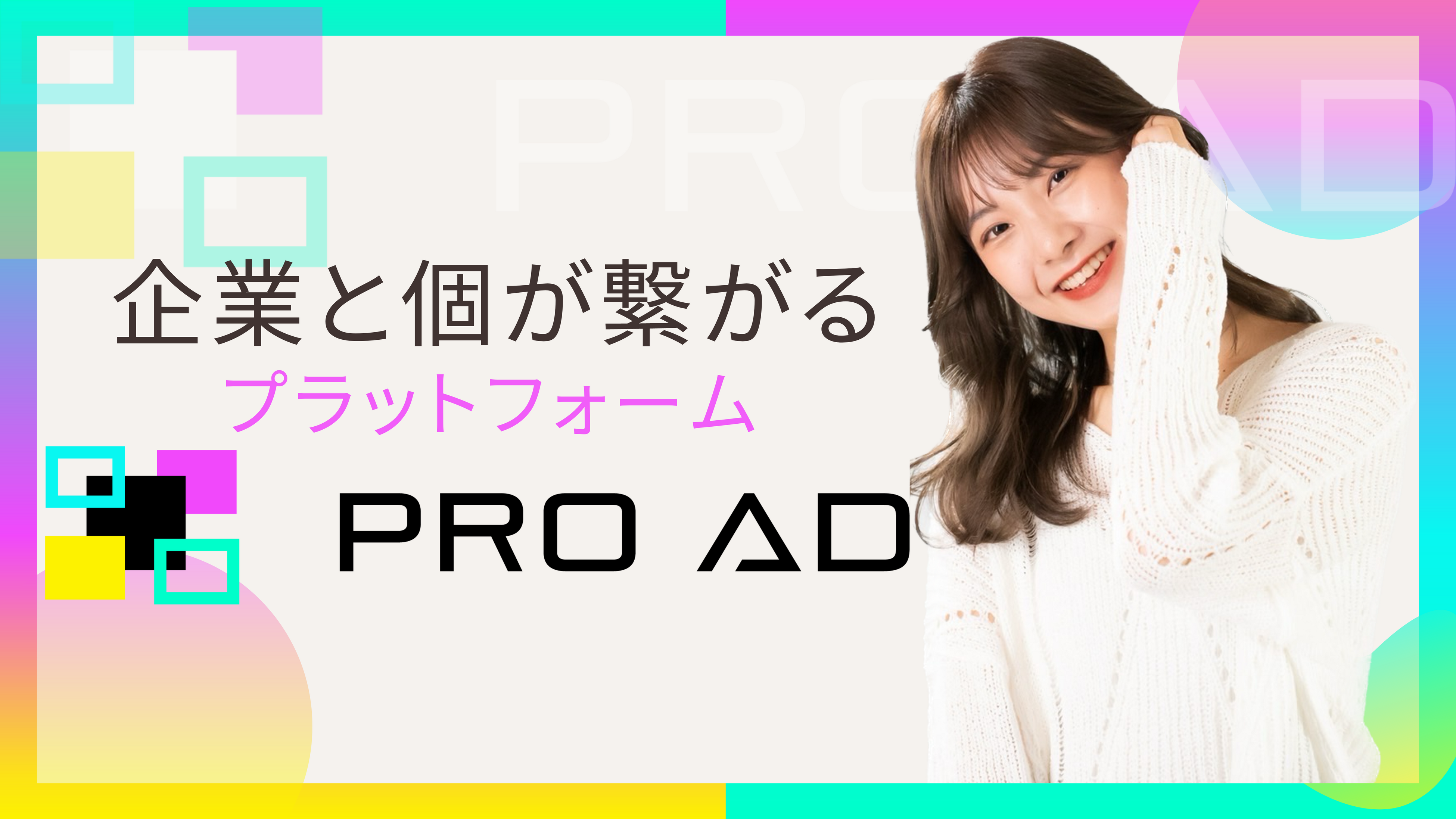 活躍の場拡大を目指し、イベント/オーディション情報や求人、、SNSPR案件の掲載において企業と個人のマッチングを図るプラットフォーム『PRO AD』(プロアド)をリリースしました。登録インフルエンサー1,000人超え、総フォロワー数1,000万人超えのエンタメ業界に特化したプラットフォームです。