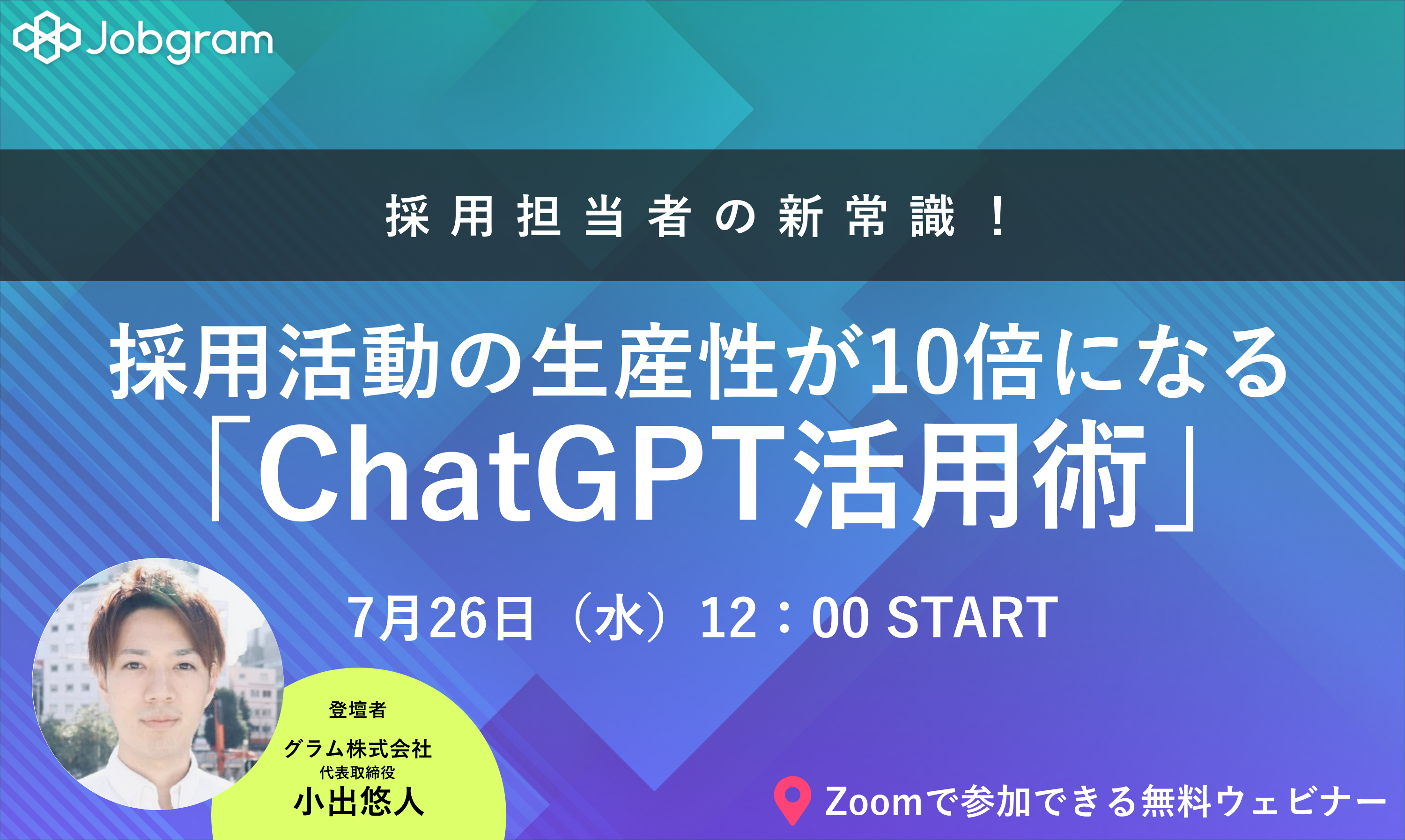 参加方法:フォームより事前申込( https://job-gram.jp/seminar/ChatGPT-20230726 )