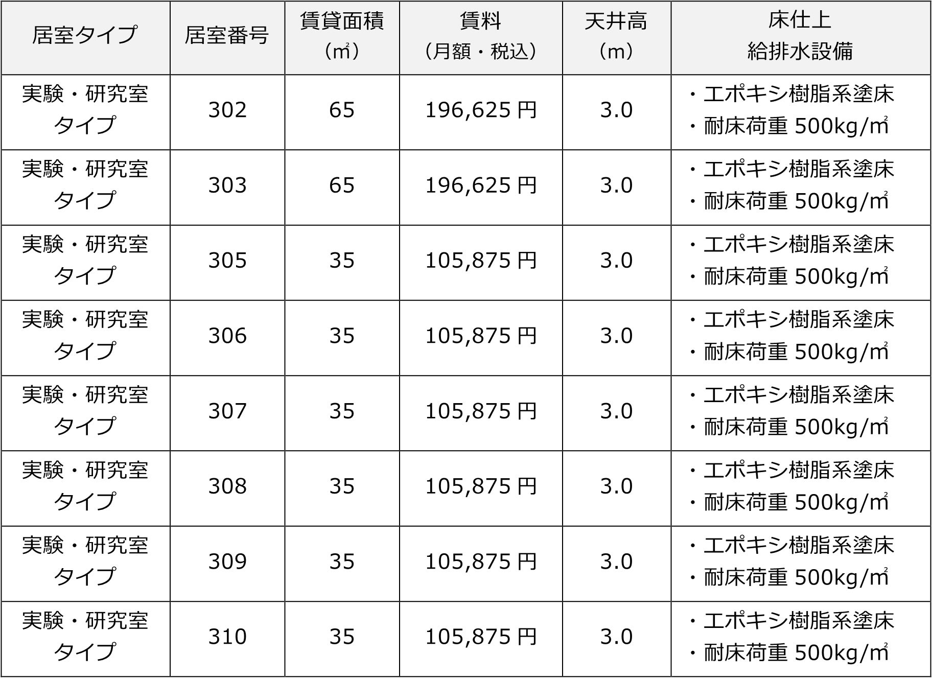 ※敷金はいずれのタイプも賃料(税抜)の3ヶ月分。