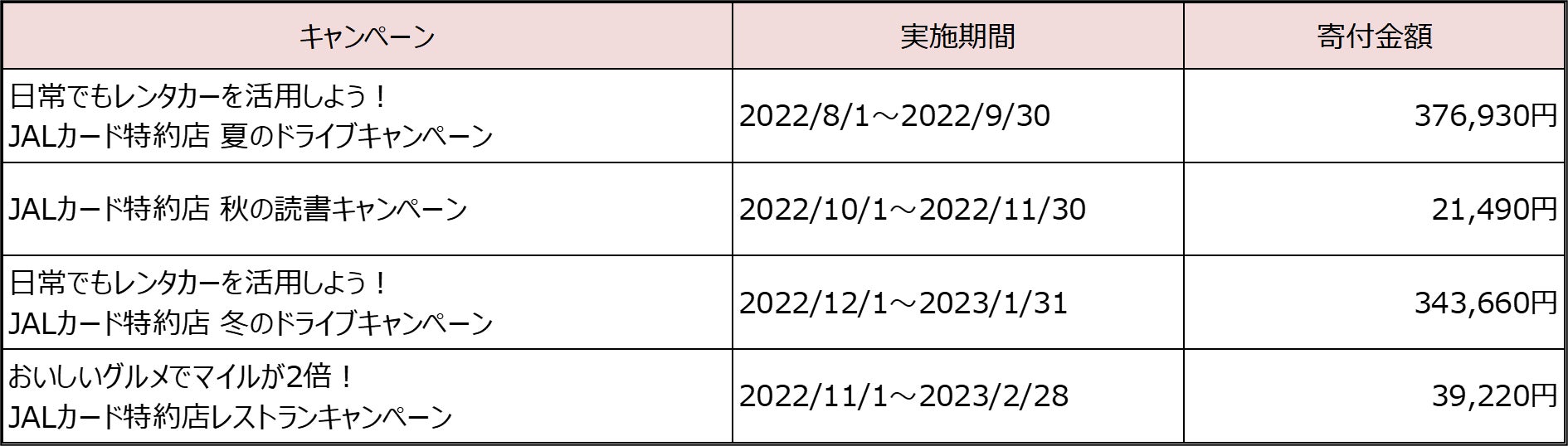 <2022年度 対象キャンペーン一覧>