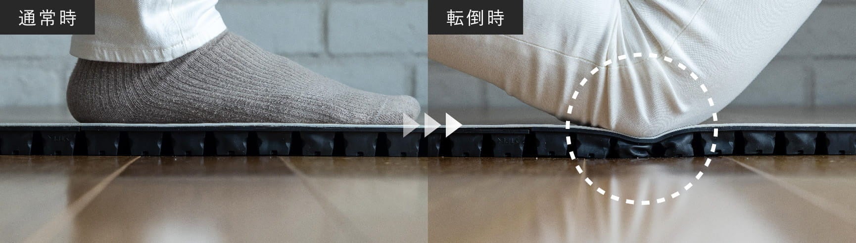 普段は硬く歩きやすいのに、転んだ時に凹んで衝撃を吸収する「ころやわ®」について