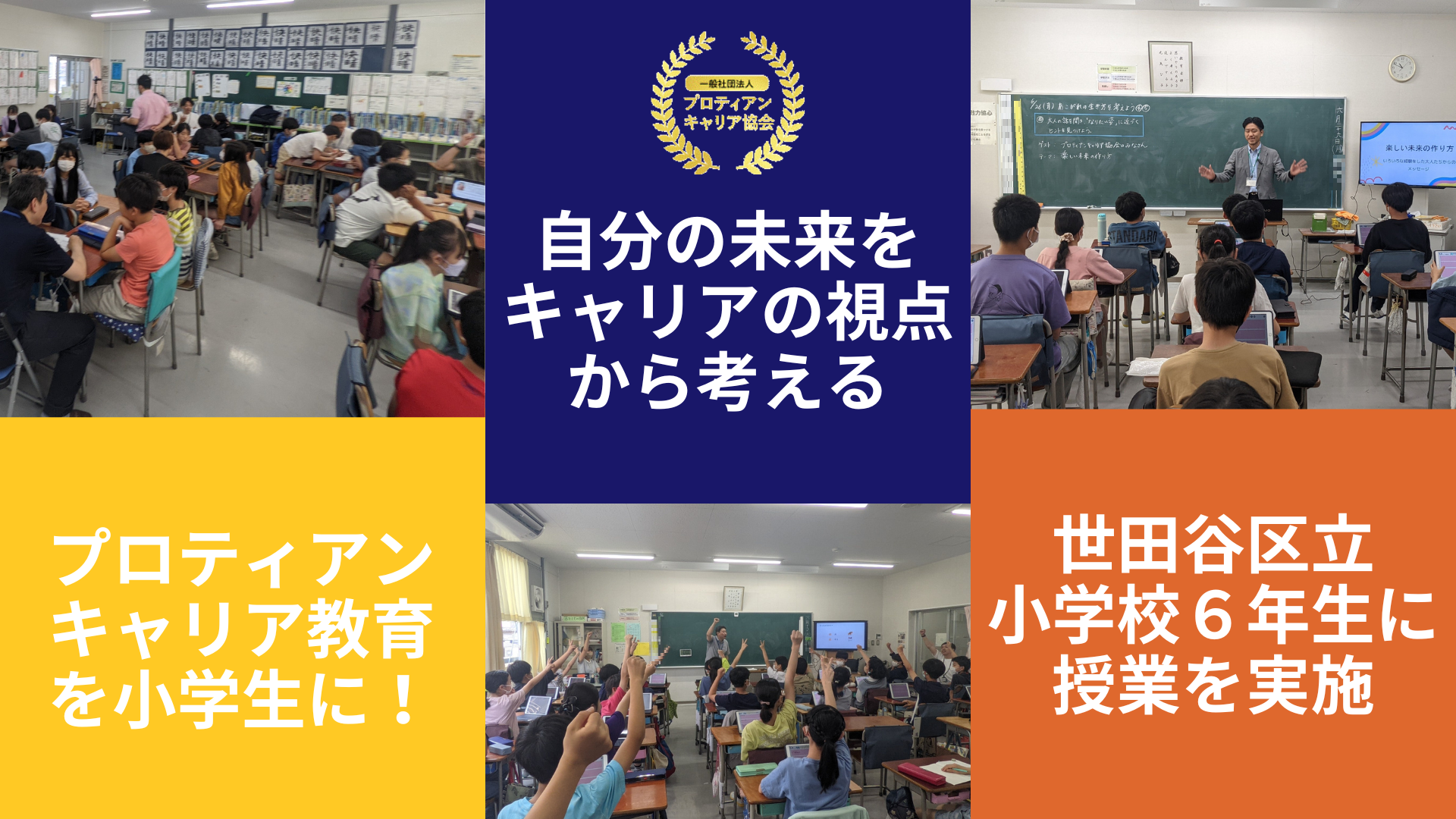 この思いを胸に、プロティアン・キャリア協会の教育ラボに所属する14名が、世田谷区立瀬田小学校の6年生にプロティアン・キャリアを伝えてきました。