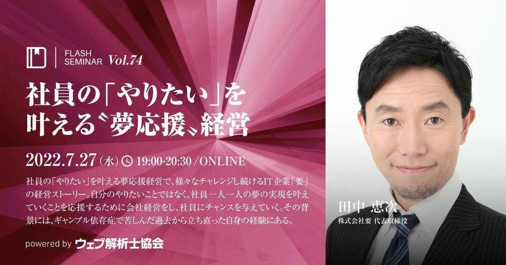 株式会社要の田中恵次社長にご登壇いただき、“夢経営”について語っていただきます。