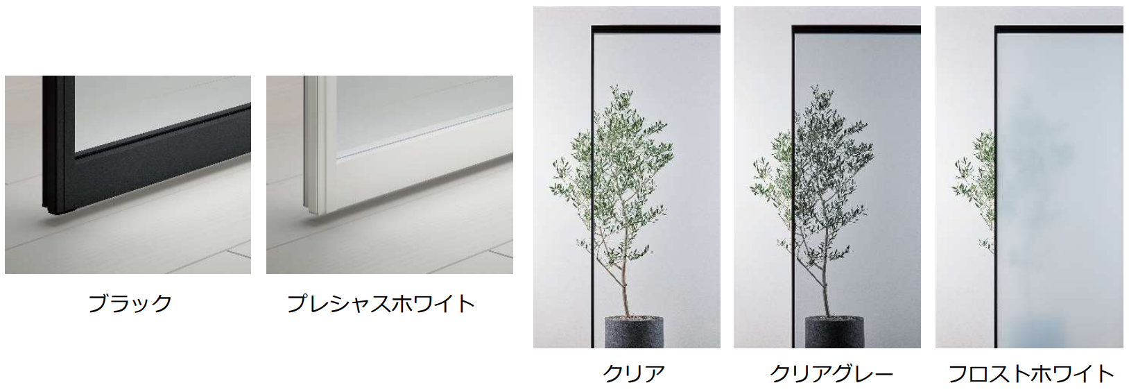 インテリアや暮らしのシーンに合わせて2色のフレームと3色のガラスから選べます。
