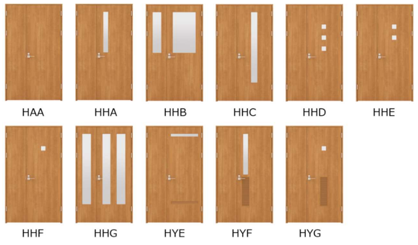 共用部の出入り口に使用可能な、親子ドア、両開きドアを展開します。