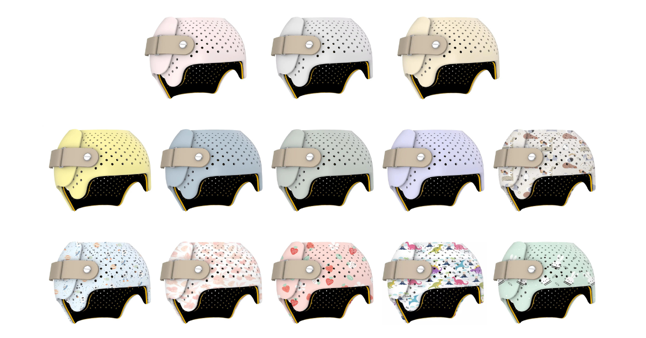 赤ちゃんとご家族が負担なく治療が受けられるように、また医師が快適に治療を提供できるように設計開発された日本製の頭蓋形状ヘルメットです。一人ひとりの頭の形状に合うように完全オーダーメイドで3Dプリンターで製造しています。ヘルメット治療は、赤ちゃんの月齢が小さい時期に6か月前後にわたって治療を行うため、赤ちゃんはもちろん、治療に関わるご家族や診療を行う医師にも一定の負担がかかります。