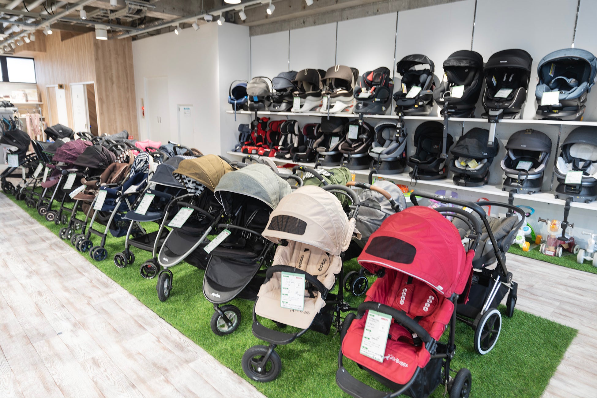 明るく天井が高い開放感のある空間や、キッズスペースを常設するなど従来のリユース店とは異なるキレイで居心地の良い店内にこだわっています。授乳室・おむつ替え台のあるベビーケアルームやお手洗いもベビーカーのまま入ることができ、通路も同様にベビーカーが通れる作りでお子様連れでも安心して利用できる店舗を心掛けています。また、こどもが自分で“お買い物”を体験できる “おもちゃの量り売り”ブースを設置。楽しみながら、モノやお金の大切さを学んでもらえます。