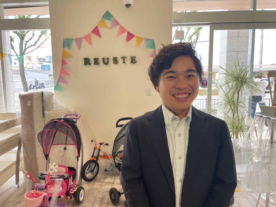 皆さん、はじめまして。「ふくちゃん リユスタ」の企画・運営を担当している藤本です。僕は元々、「FUKU CHAN」のバイヤーとして活動していましたが、こども用品の使用期間が短いといった問題を少しでも解決するため、「ふくちゃん リユスタ」を立ち上げました。今後も、お品物だけでなくお客様の大切な想いも次の方に繋げることで架け橋となり、地元に愛されるお店を作っていきます。