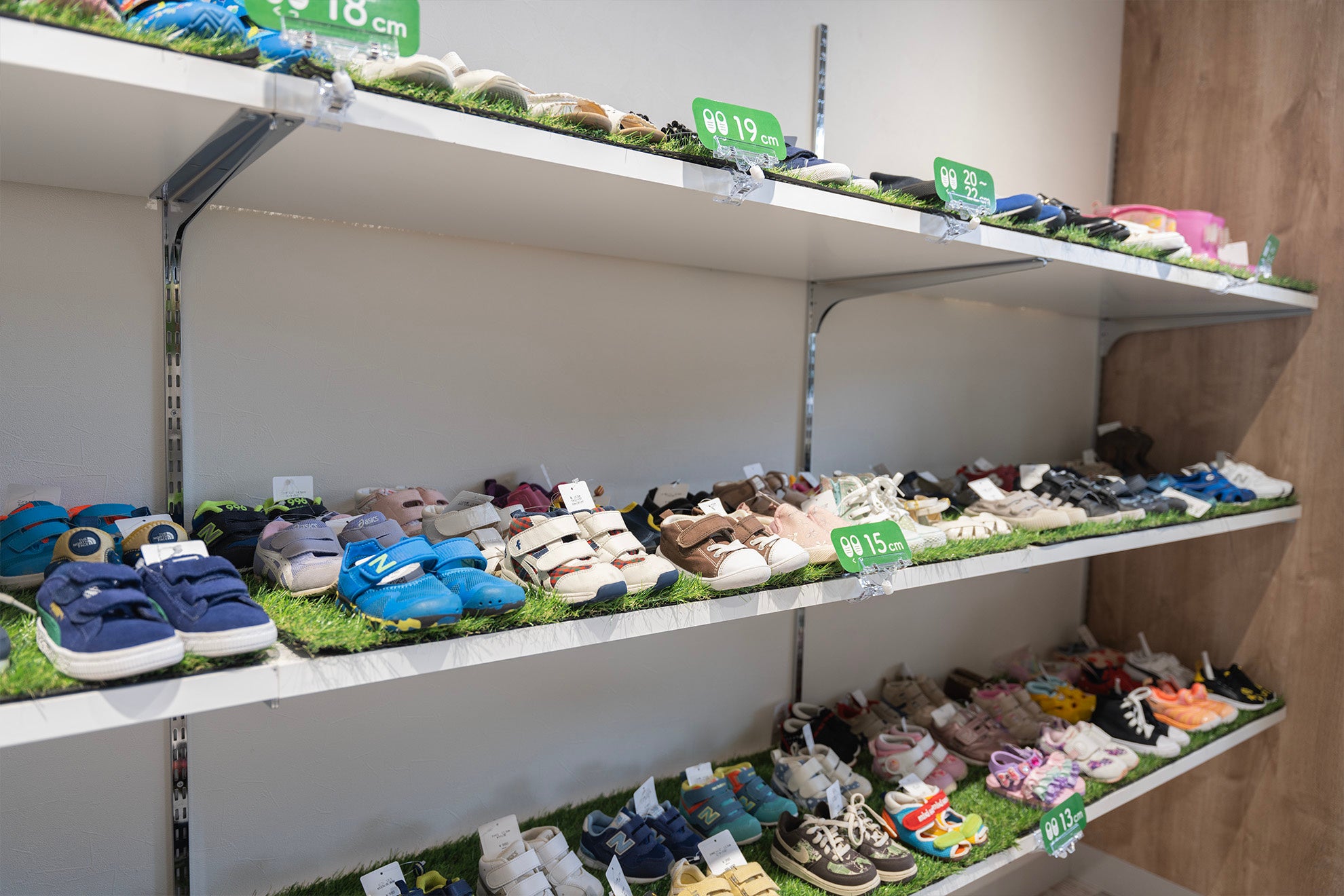 ふくちゃん リユスタ「東京八王子店」は、新生児から小学校低学年頃までのキッズ・ベビー用品全般を取り扱っており、ベビーカー、チャイルドシート、バウンサーなどの大型ベビー用品や、キッズ・ベビー服、くつ、アパレル小物など常時3,200点以上を並べる豊富な品揃えが特徴です。なかでも、ブランド服は2,000点以上を用意し、リユースならではのお求めやすい価格で取り揃えました。