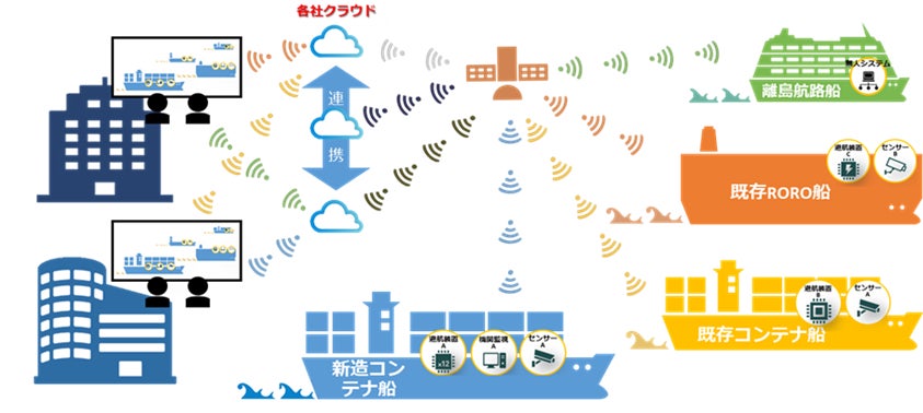 将来の内航業界を支える次世代船を設計すると共に無人運航船が支える将来の内航業界を想定した船陸オペレーション実証(異なる4隻の船舶(無人運航機能を全て備えたFull Packageの新造コンテナ船、無人運航機能の一部を備えた既存コンテナ船及び既存RORO貨物船並びに既存離島航路船)及び2つの陸上支援センターを利用)を実施する