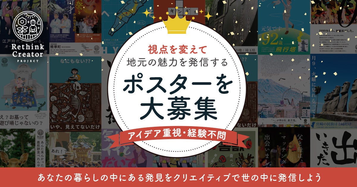 2018年より実施している「Rethink Creative Contest」は、デザイン経験がなくてもチャレンジできる、アイデア重視のクリエイティブコンテストとして、あなたが暮らす地域をRethinkして、その地域の魅力を今までにない切り口でアピールしたポスターを募集します。