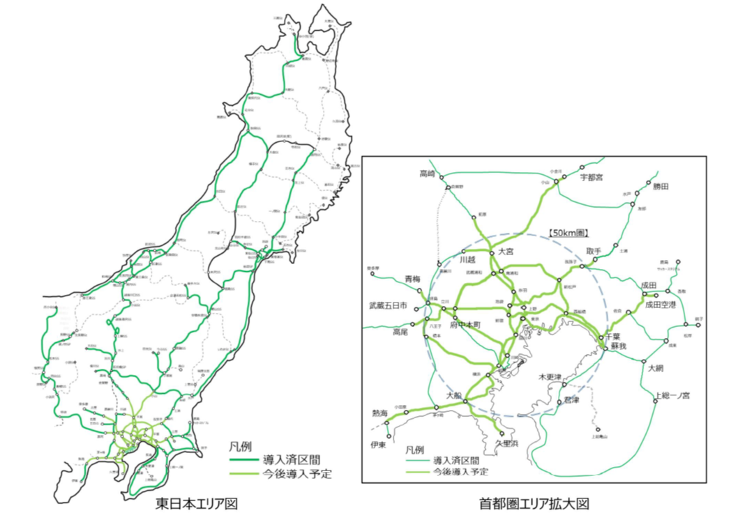 架線設備モニタリング導入エリアおよび拡大予定エリア図