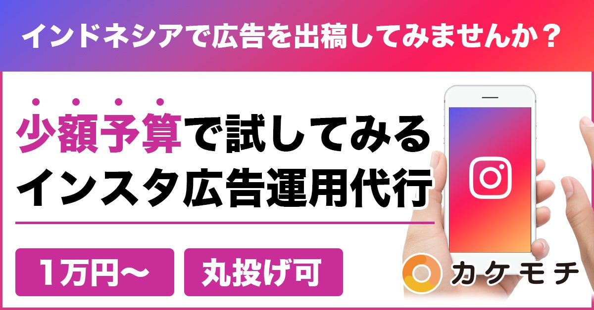 インドネシアに特化した進出支援とマーケティングを手掛けるカケモチ株式会社(本社:福岡県福岡市 代表取締役:柳沢 孝一)は、インドネシア人の集客・認知獲得を目的とした、少額予算でのインスタグラム広告運用のサポートを2023年7月1日から始めました。