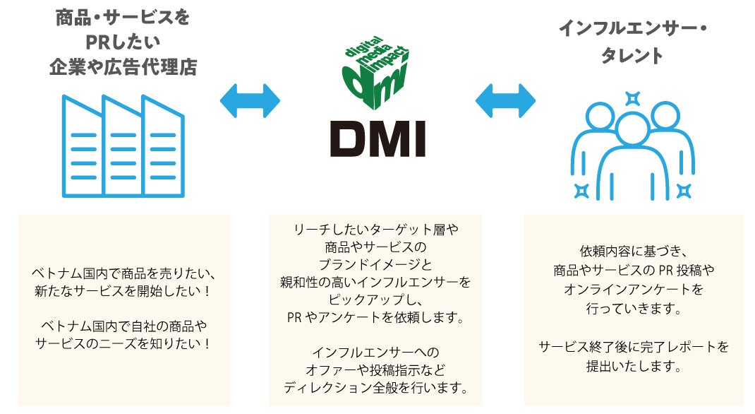 我々DMIは30年に渡る現地での事業展開の中で目まぐるしく進化する過渡期のベトナムを把握すると共に、ベトナム現地の購買層に強力な影響力を持つインフルエンサーや、現地企業にしか活用できない地域密着型のローカルインフルエンサー達を多数活用するリソースを獲得しました。