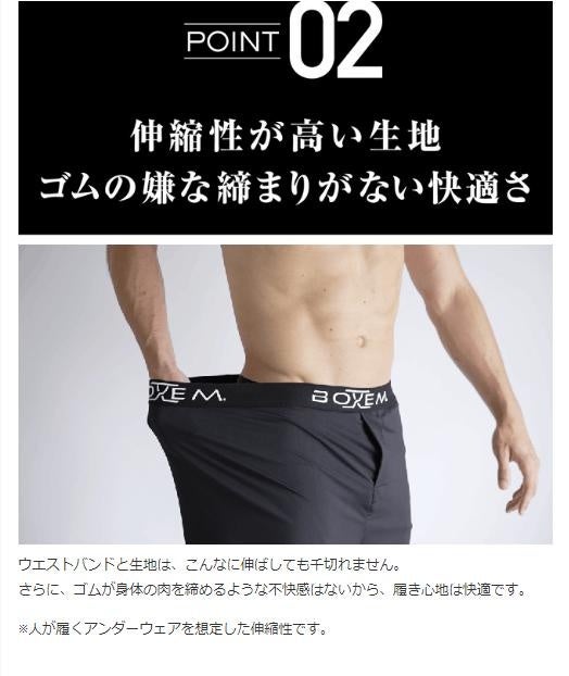 男性の陰茎周りの温度は1度上がるたびに、種を作る力は弱まってしまいます。そこでBOXEMアンダーウエアはそんな現代の世の中で戦う男性のために生まれました。通気性が良い生地で作られ、男性の陰茎のポジションにこだわり、下半身に熱がこもることなく着用でき、更に身体から出た汗を生地が吸い取ってくれるため、下半身の蒸れを限りなく押えられます。