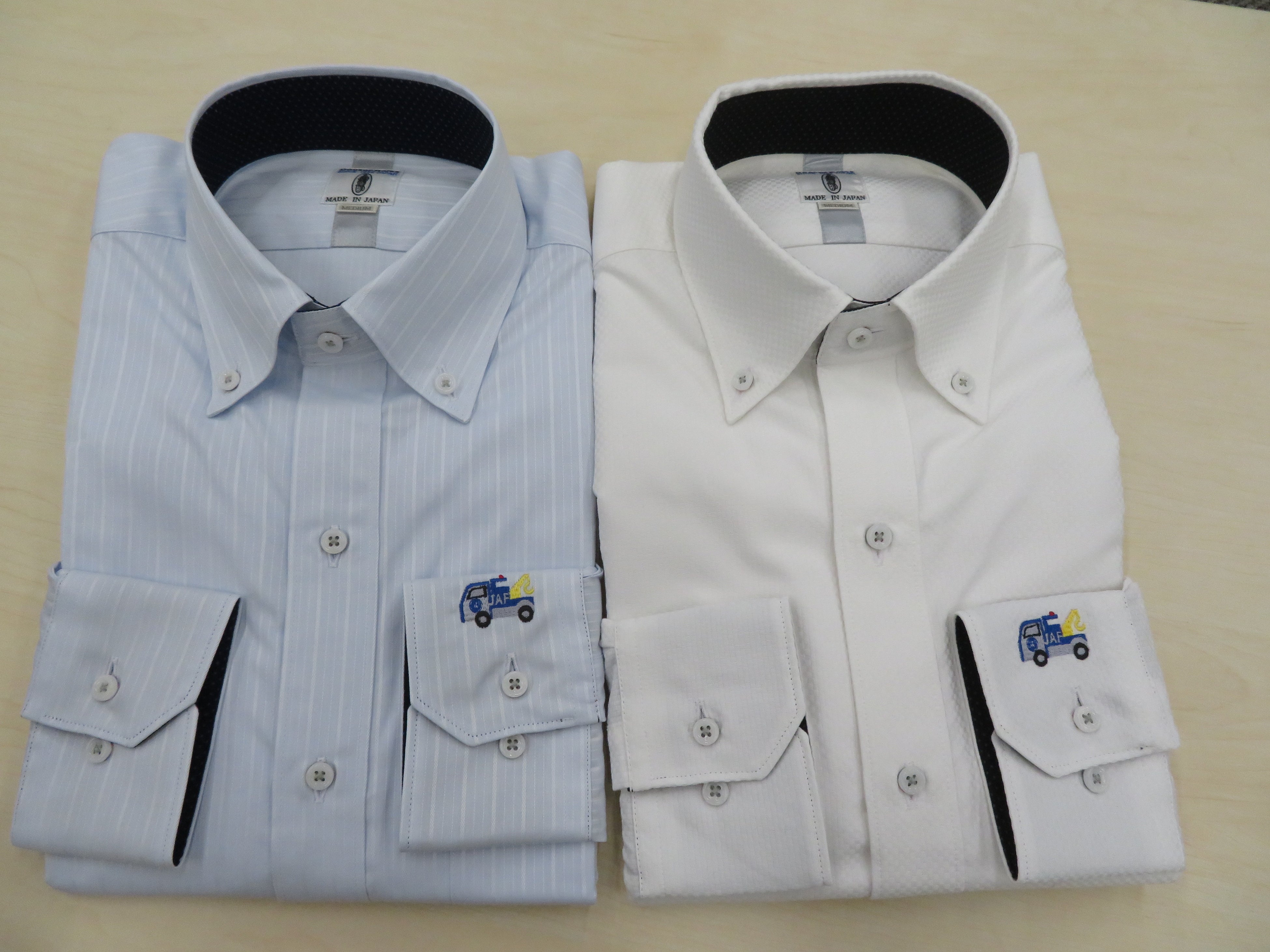 今回は、これからの時期にぴったりのさわやかなサックスブルーのストライプ織とどのスーツにも合わせやすい白(無地)の2種類を用意しています。