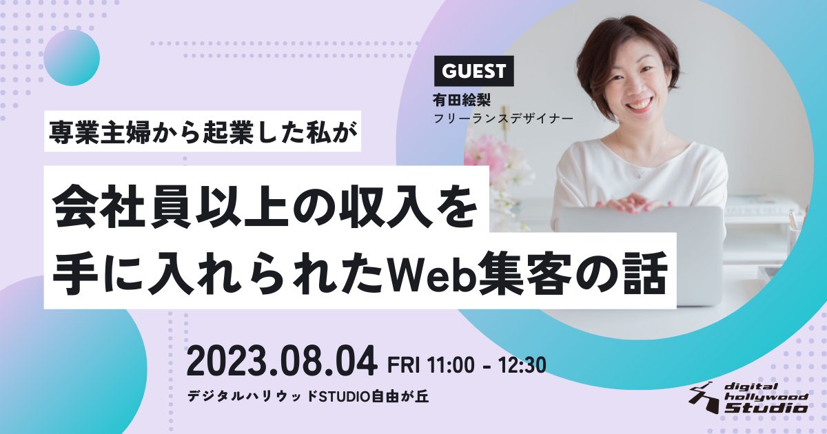 本セミナーでは、有田さんが主婦で起業した理由や個人事業主としての集客方法、SNSやブログを活用するメリット、Web集客のメリットとデメリット、発信が苦手な方でも実践できる即効性のあるWeb集客についてお話しいただきます。