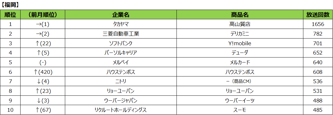 2023年6月度 エリア別テレビCM放送回数ランキング