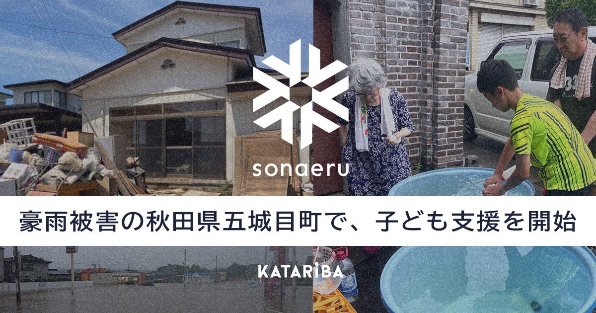 また、本支援活動にかかる費用のご寄付も募っています。カタリバでは2019年より災害時子ども支援「sonaeru」を始め、さまざまな災害への支援活動を行ってきましたが、今回の秋田豪雨は、被害が広域に渡り、全容把握が難しく混乱した状態が続いていることが特徴で、メディアでの報道もあまり多くはありません。しかし五城目町には500人以上の子どもたちがおり、彼らへの居場所の提供や学習支援の実施、生活インフラのサポートを必要としている状況が続いています。
