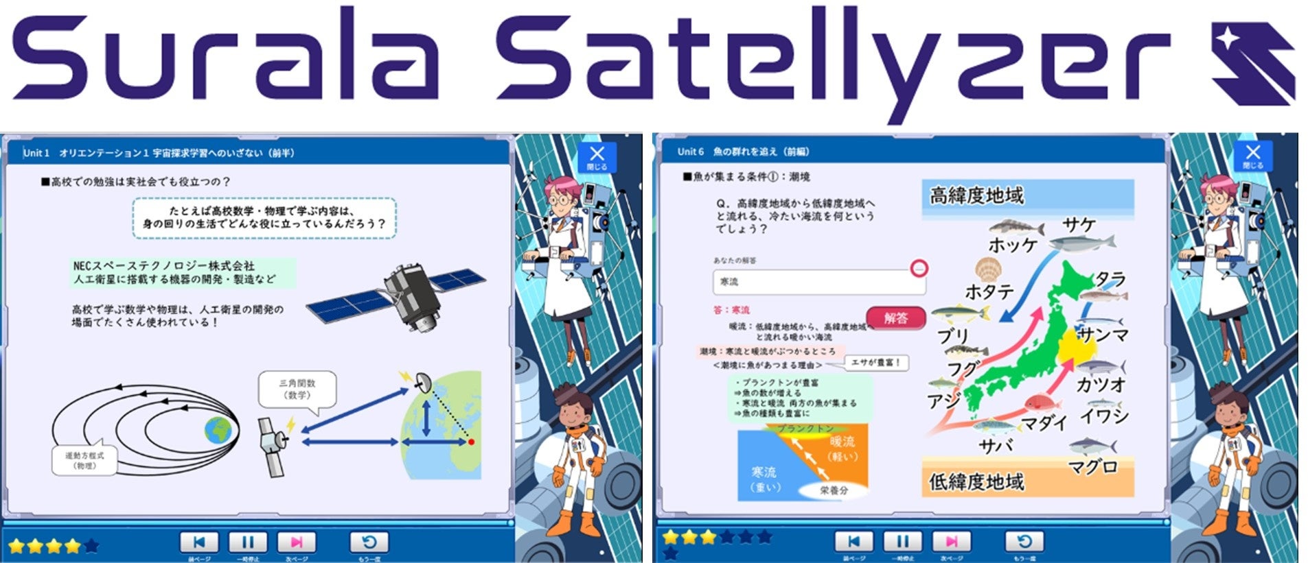 NECスペーステクノロジー株式会社と共同開発し、宇宙というテーマを通じて、遠い世界と実生活とのつながりなど幅広い視野を持つ機会を生徒に提供するICT教材です。