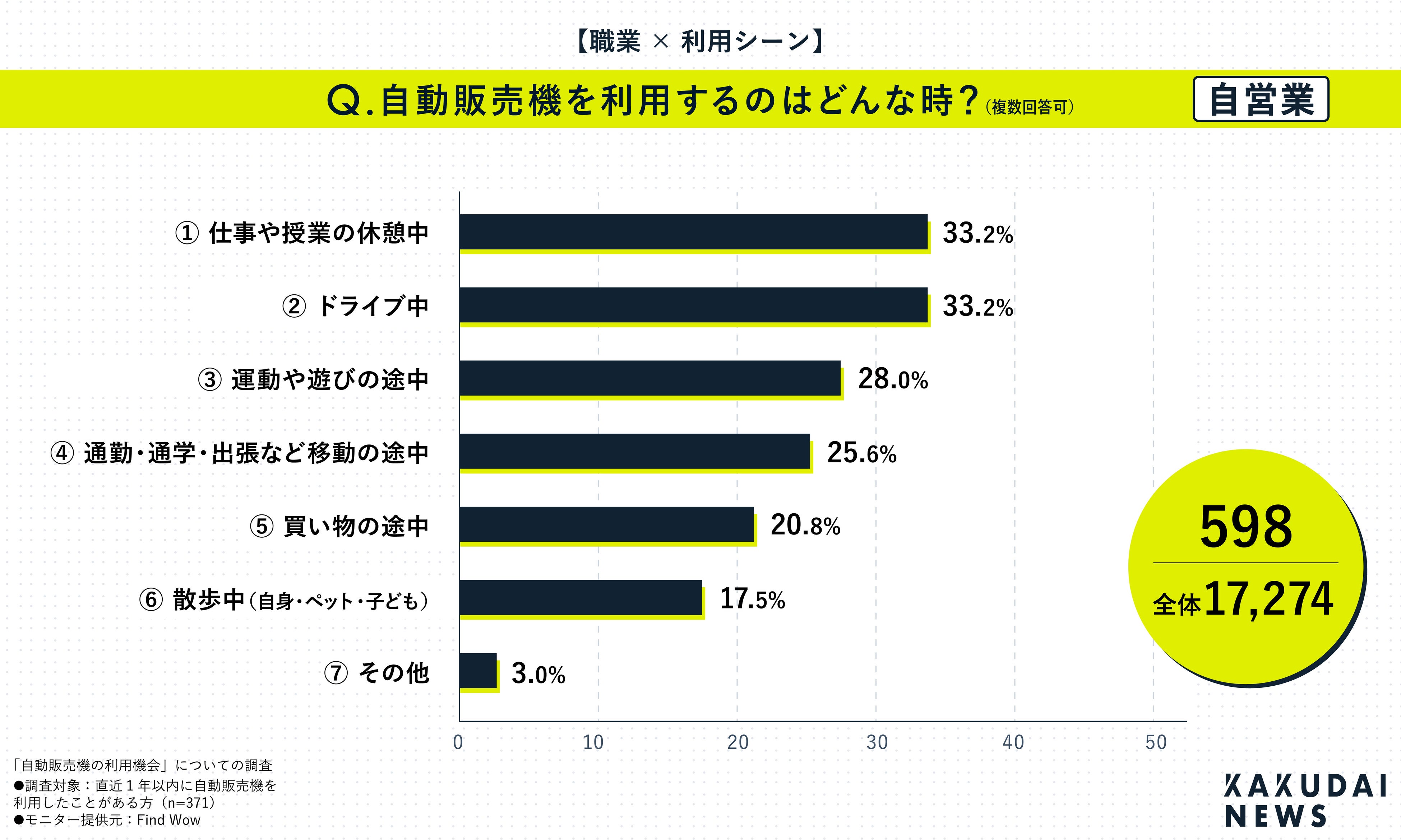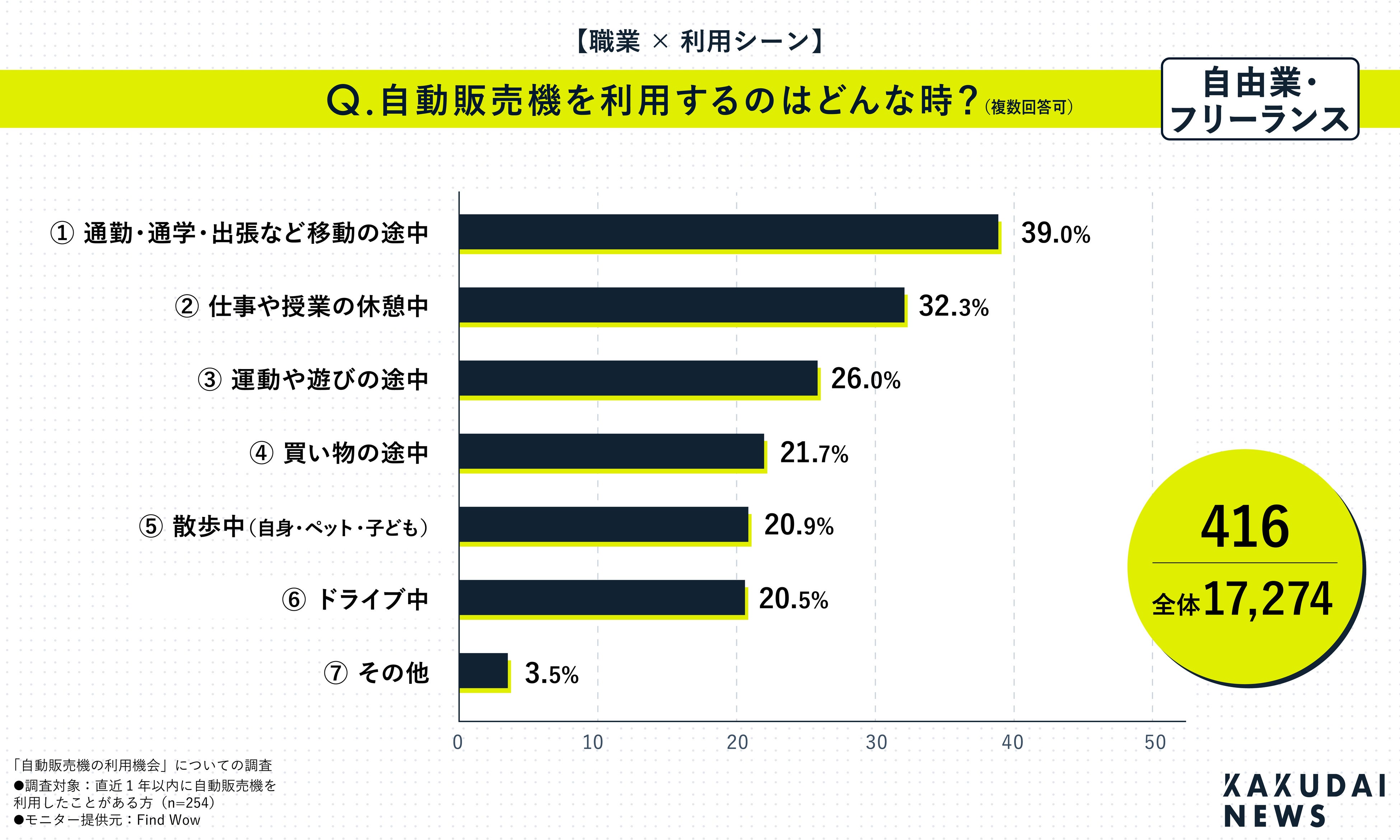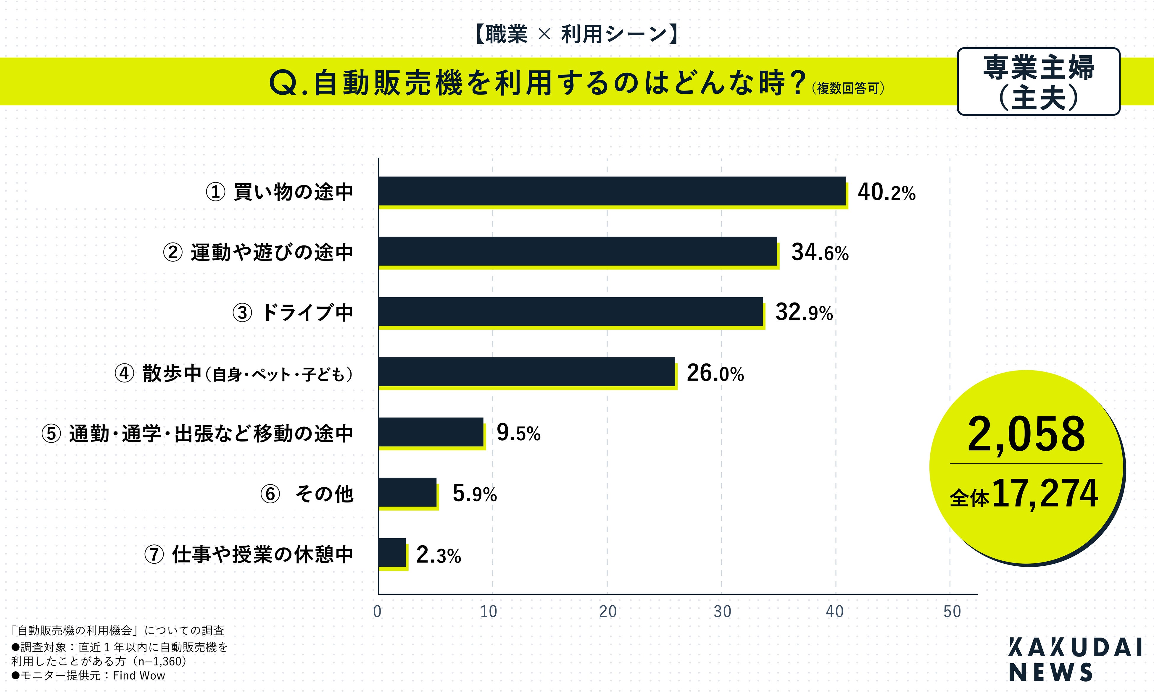 今回は職業別の自動販売機の利用シーン後編の集計結果を発表いたします。