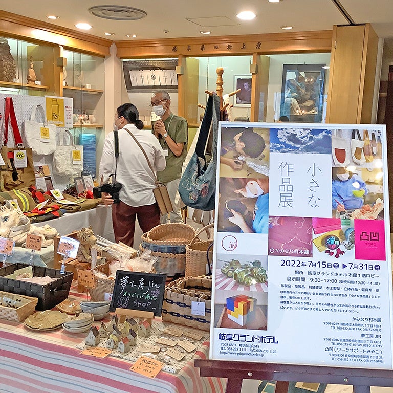 岐阜グランドホテル(岐阜市長良川畔 社長 岩瀬正明)では、7 月25日(火)から 8 月 6 日(日)まで、県内3つの障がい者事業所で作られた作品の展示・販売をする イベント「小さな作品展」を開催します。