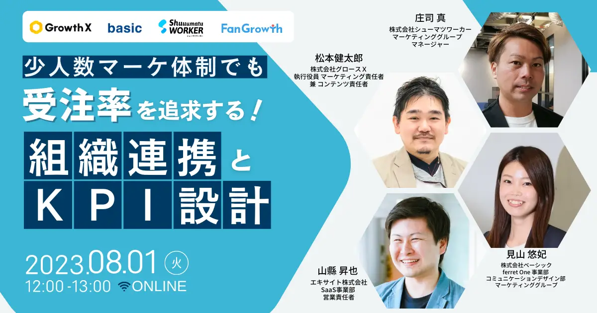 本ウェビナーでは少人数のマーケチームが組織全体とうまく連携するための考え方、受注率の向上に直結する効果的なKPI設計、限られた人材リソースで成果を最大化するための戦略と手法をお話しします。
