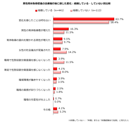 2.法施行後の変化「何もない」63.7%/結婚している・していない別比較