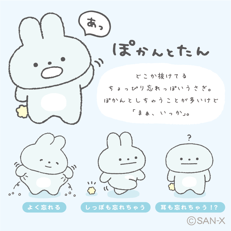 ぽかんとたんは、どこか抜けてるちょっぴり忘れっぽいうさぎ。
