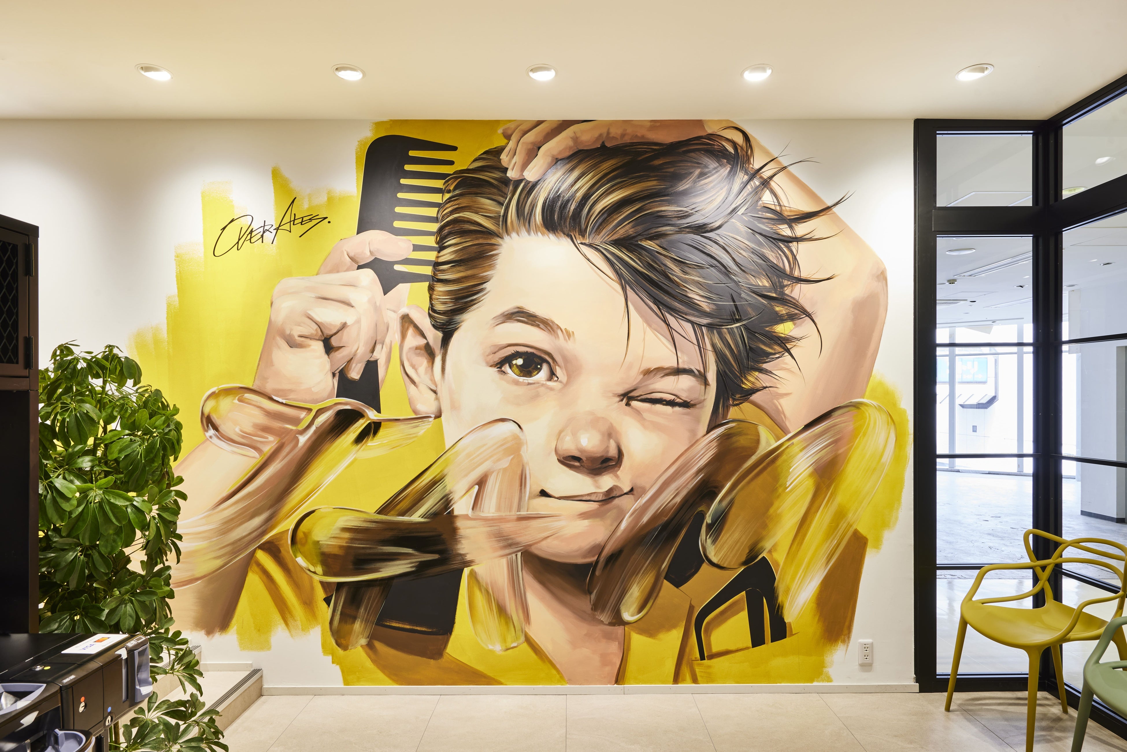 吉祥寺店・町田a-mix店・名古屋店に続き、今回の町田center bldg店・札幌店も同様に、館内のアートを新進気鋭のアートカンパニーOVER ALLsの作品で彩り、ビューティシャンのデザインの強化とイノベーションを促します。