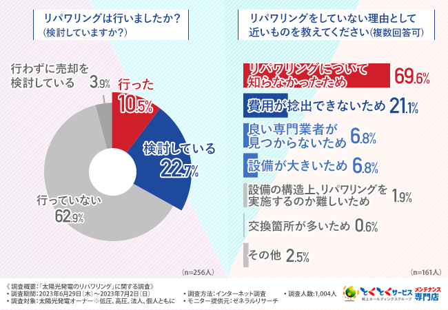そこで今回、太陽光メンテナンスの総合専門会社『とくとくサービス』(https://wajo-holdings.jp/service/)を運営する株式会社和上ホールディングスは、太陽光発電オーナーを対象に、「太陽光発電のリパワリング」に関する調査を実施しました。