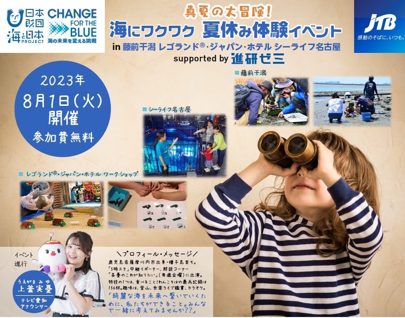 海のスペシャリスト3名(藤前干潟のガタレンジャーのマナティさん、シーライフ名古屋アクアリストの伊藤 綾香さん、シーライフ名古屋レンジャーの上田 俊哉さん)をガイドに迎え、参加者に分かりやすくイベントを案内します。当日はテレビ愛知アナウンサーの上釜 実憂がイベント進行を務め、海のことをたくさん知ってもっと好きになれるように、きれいな海を守るためにできることを参加者の皆さんと一緒に考えます。