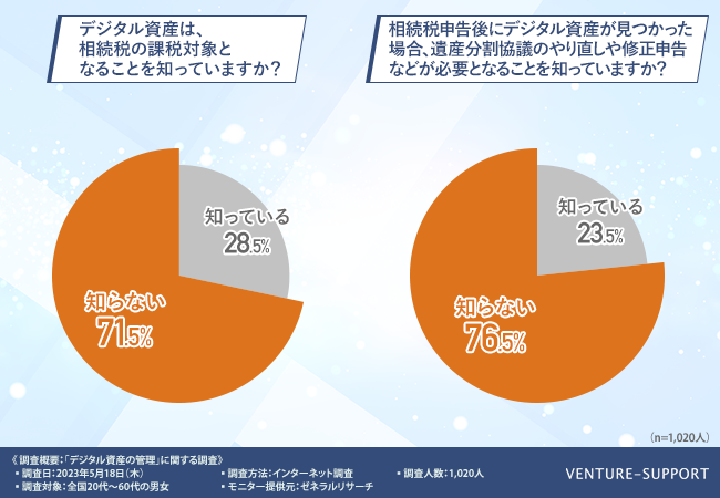 デジタル資産は相続税の課税対象となることを「知らない(71.5%)」が7割に