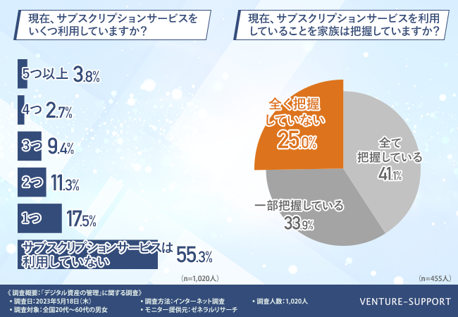 また、4人に1人が、サブスクリプションサービスを利用していることを家族は「全く把握していない」と回答している。