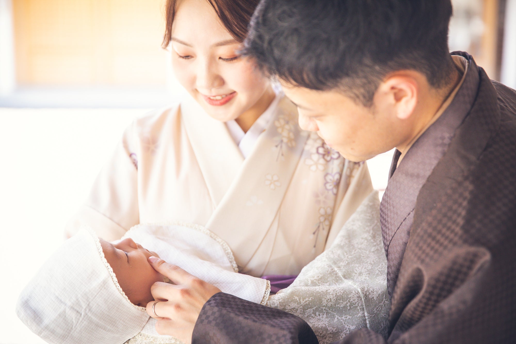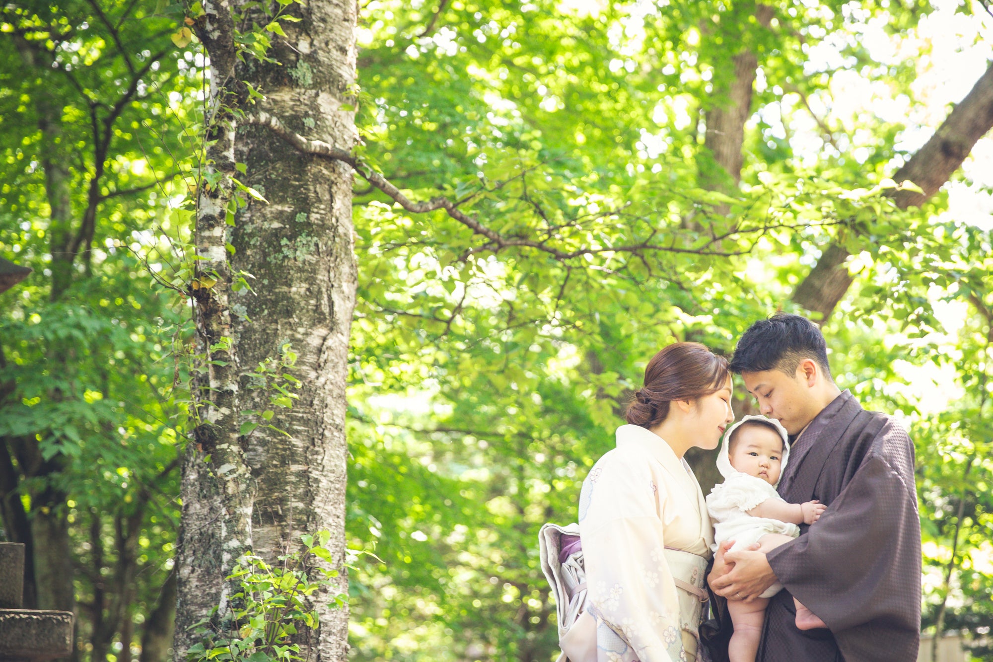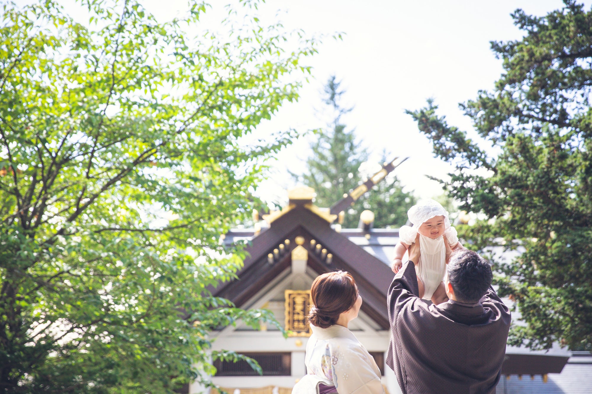 お子様の誕生を神様に報告するお宮参り、神社で神聖な雰囲気の中、初めてのお祝いを記念の1ページに刻む素敵なビジュアルになりました。