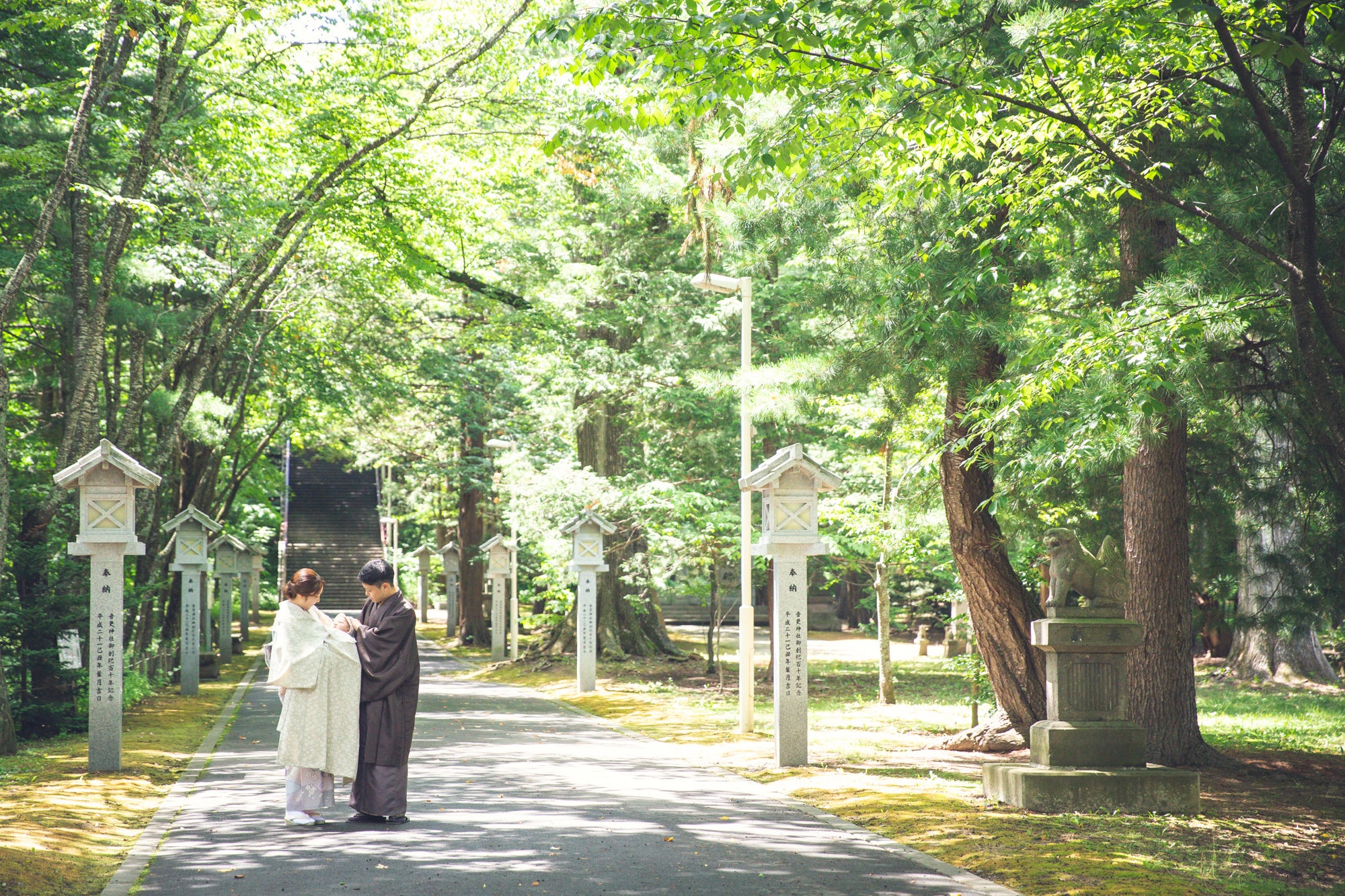 神社敷地内には緑溢れる美しい風景がたくさんあります。新しい命の息吹を感じるお宮参りにぴったりな撮影が出来るスポットがたくさんあります。