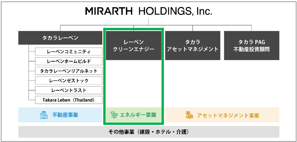 レーベンクリーンエナジーは、脱炭素社会の実現に向け、太陽光発電などの再生可能エネルギー事業に取り組む、MIRARTHホールディングスのエネルギー事業を担うグループ会社です。