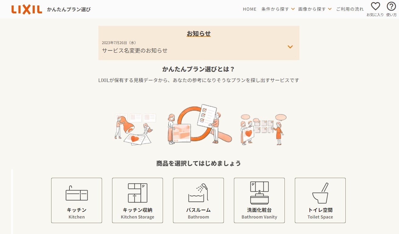 株式会社 LIXIL(以下 LIXIL)は、既存のデジタルサービスの「商品プランレコメンドシステム」に「水まわりかんたんナビ」を統合して「かんたんプラン選び」として7月26日からサービスを開始します。