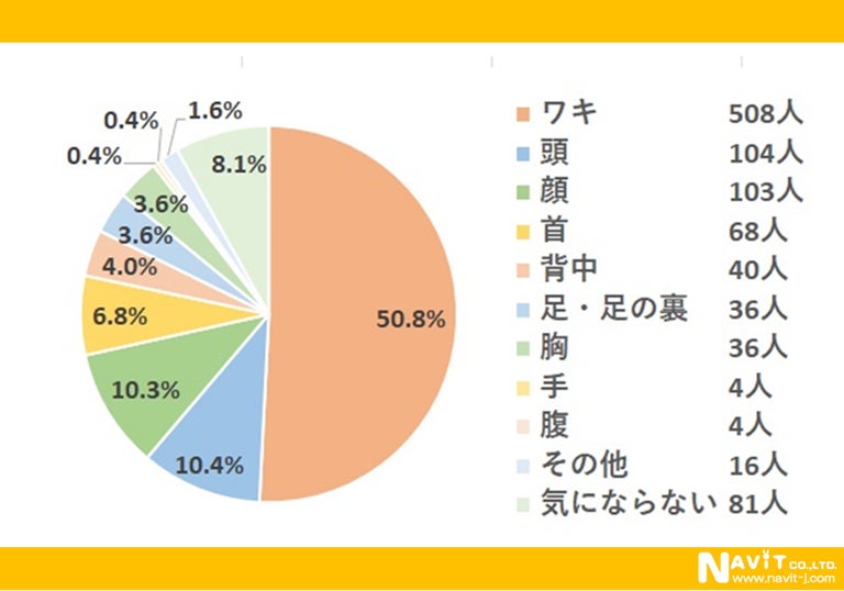 • 汗をかいて気になる部位は「ワキ」が半数