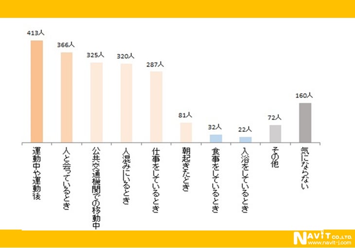 • 自分の汗が気になるのは「運動中や運動後」が最多