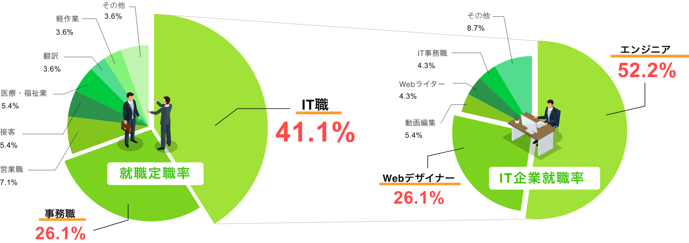 卒業生の約41%がIT企業に就職しており、職場定着率も94%を誇ります。