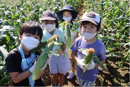 今年度は、とうもろこしと落花生の栽培方法について学んだ児童が、1年生から6年生までが混在したグループで農業体験を実施しています。