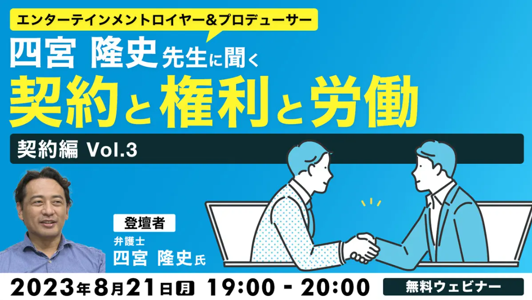エンタテインメントロイヤー&プロデューサー・四宮隆史先生に聞く 契約と権利と労働 ~契約編Vol.3~