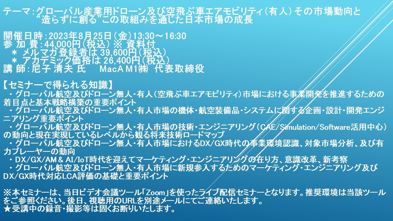 ・ グローバル航空及びドローン無人・有人市場に新規参入するためのマーケティング・エンジニアリング及びDX/GX時代対応LCA評価の基礎と重要ポイント