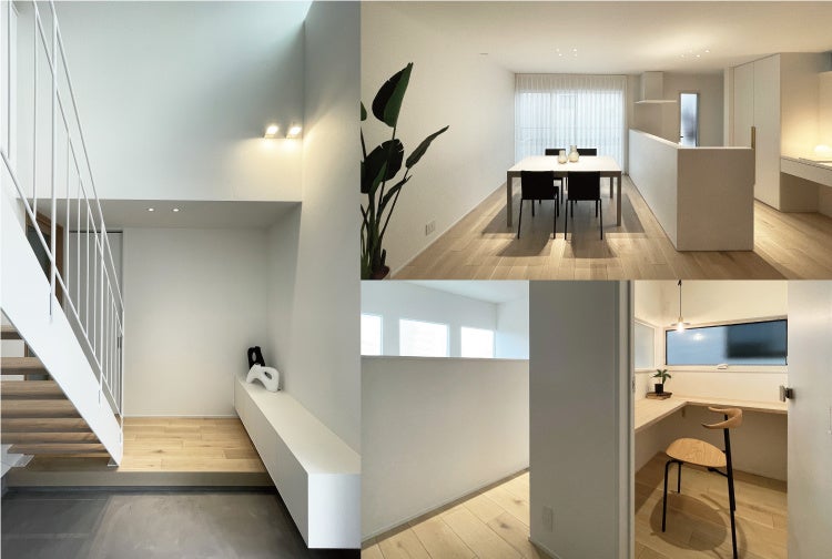 ・特徴:2階には書斎を設け、生活スタイルに合わせて家事コーナーや趣味室としてもご活用いただけます。全館空調を設置していることで24時間365日室温を一定に保つことができ、部屋ごとに温度差が生じないなどの快適性をご体感いただけます。また、電気錠、照明、エアコン、ガス給湯器がインターネットに繋がり、スマートフォンから遠隔操作できるIoTシステムも体験できます。