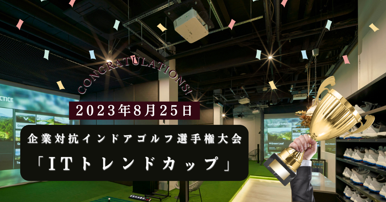当社では、企業の生産性向上やDXの促進のため、企業間の交流の活性化、社内エンゲージメント向上を目的とし、一般社団法人インドアゴルフ協会の協力のもと、輝く!企業対抗インドアゴルフ選手権大会「ITトレンドカップ」を8月25日(金)に開催する運びとなりました。