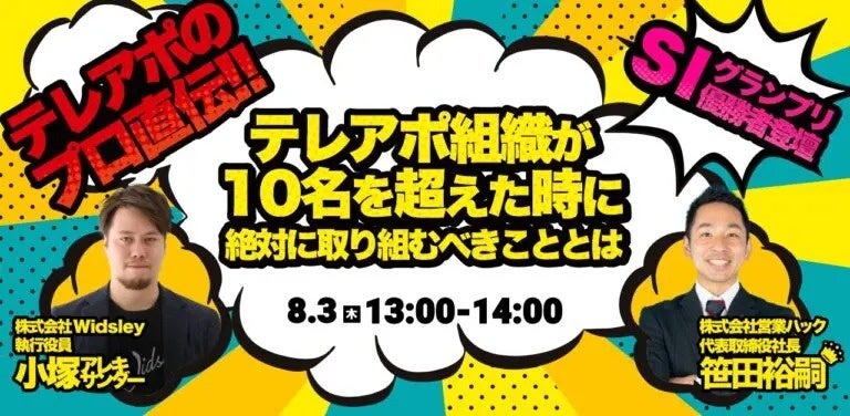 そこで今回は、営業・CSの業務効率化を実現し、インサイドセールスの生産性向上を支えるCTIツール 「comdesk lead」を運営している「株式会社Widsley」小塚様と共に、テレアポのリスト作成からトークの仕方、テレアポマネジメントの極意について余すところなく先日解説させていただきました。
